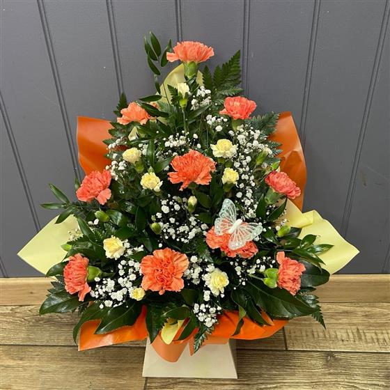 Please note that due to the seasonal availability of flowers it may be necessary to vary individual stems from those shown. Our skilled florists may substitute flowers for one similar in style, quality and value. Where our designs include a sundry item like a vase or basket it may not always be possible to include the exact item as displayed. If such an occasion arises we will make every effort to replace the item with a suitable alternative.