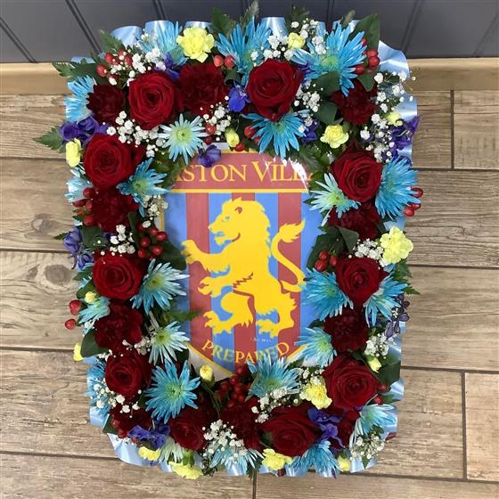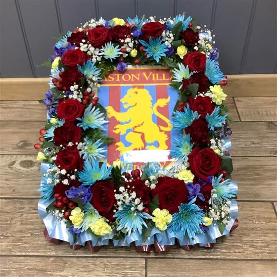 A beautiful mix of flowers arranged to frame an A4 team logo or photo. Please contact us regarding what you would like inside the frame.