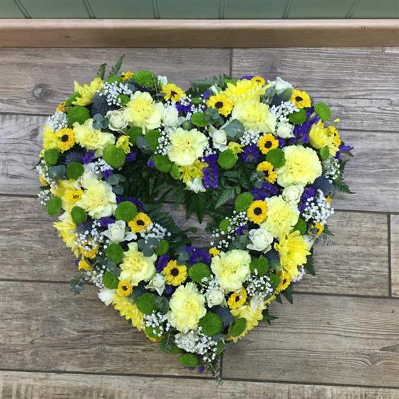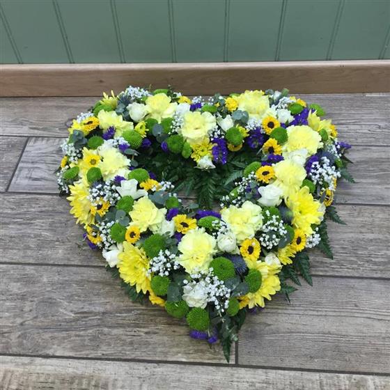 A traditional open heart shaped tribute created using a wide selection of flowers.
