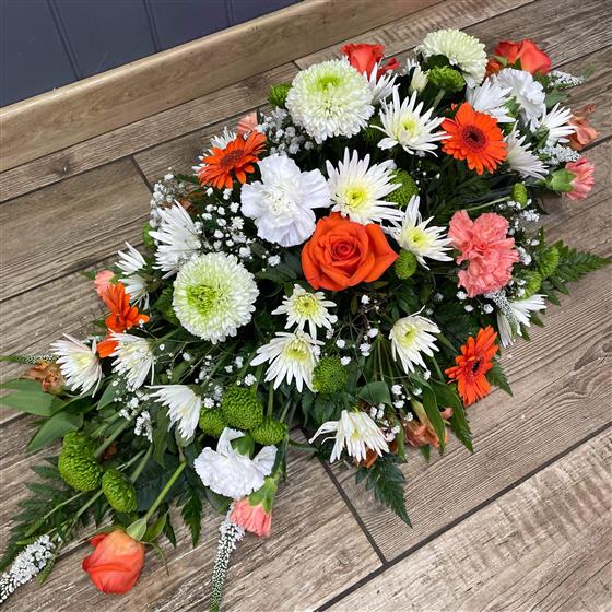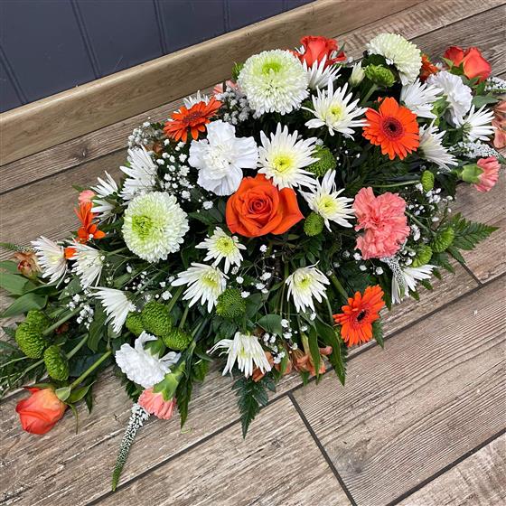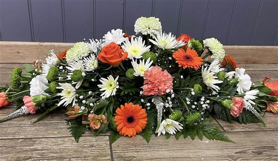 Orange, green & white coffin spray zoom 2Orange, green & white coffin spray zoom 3Orange, green & white coffin spray zoom 4