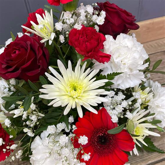 Please note that due to the seasonal availability of flowers it may be necessary to vary individual stems from those shown. Our skilled florists may substitute flowers for one similar in style, quality and value. Where our designs include a sundry item like a vase or basket it may not always be possible to include the exact item as displayed. If such an occasion arises we will make every effort to replace the item with a suitable alternative.